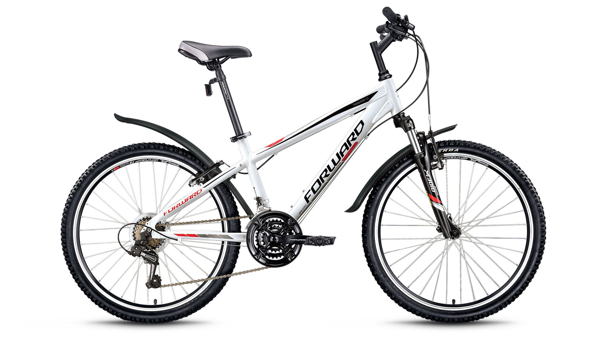 Бренд FORWARD Модель Twister 1.0 Год 2016 Серия Twister Материал рамы Алюминий (Alloy) Рама/описание Алюминиевый сплав 6061 Тип вилки Амортизационная (пружина) Вилка/регулировки SR Suntour M3010, алюминиевая Диаметр колес 24" Обода Weinmann X-STAR18 Покрышки Kenda K922 (22tpi) 24x1,95 Тормоза Ободные (V-brake) Тормоз Ободные (V-Brake) Уровень оборудования Начальный Шифтеры Sun Race DLM33 Переключатель передний Shimano Tourney TY10 Переключатель задний Shimano Tourney TY21 Кассета Трещотка Shimano Tourney MFTZ20 Цепь KMC HV500 RO Каретка Neco b910, картриджная Шатуны Prowheel MC-S826, стальная Количество скоростей 18 Руль Стальной матовый, 25.4х580 мм Рулевая колонка Neco, резьбовая Вынос Резьбовой, стальной матовый Седло MTB Junior Втулка передняя Joytech, стальные анодированные Пол/возраст Мужской Втулка задняя Joytech, стальные анодированные Документы
